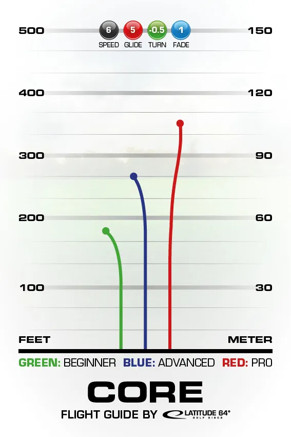 The Core is a stable midrange disc designed for a wide range of arm strength, from amateur to pro. It performs smooth, straight flights with a slight turn and gentle fade.